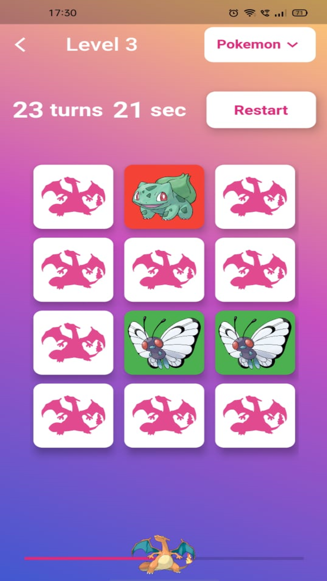 Memory Game has a Timer and Number of turns indicator that shows how much time and Numbers of turns you take to complete the task.
