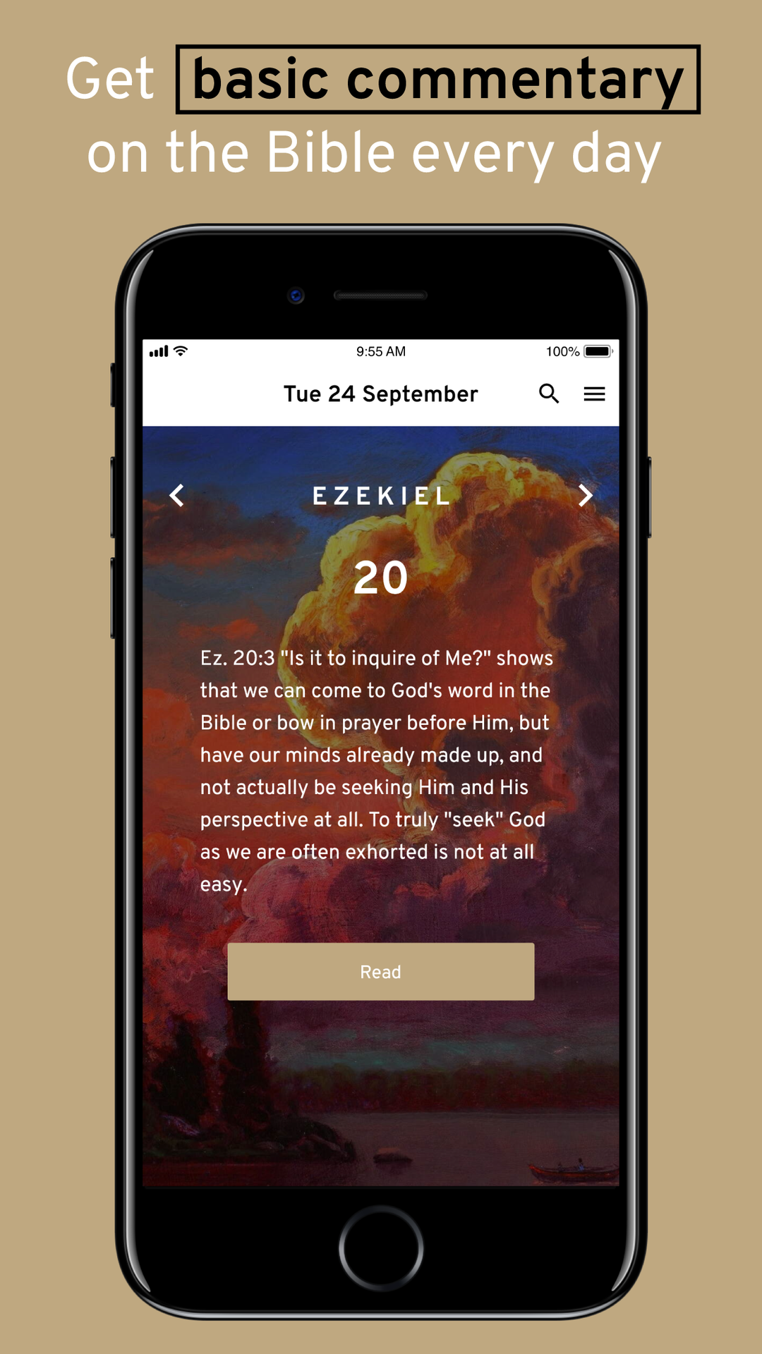 Tap any verse and you get deeper commentary. You can hear the text read as audio, and there are audio messages on every chapter. Plus audio messages for youth or total beginners on most chapters. Daily devotionals for every day according to the Bible Companion reading planner. Nothing for sale, ad-free, many genuine free offers, including a free hard copy Bible post-free. The app also includes the popular Bible Basics study course. Study online with or without a personal tutor. The deeper commentary is an in-depth verse by verse exposition of the entire Bible by Duncan Heaster; it is the complete version of the New European Christadelphian Commentary series. This is a modern, contemporary verse by verse exposition of the Bible released only in the last few years. This app offers more features and resources, absolutely and genuinely free than probably any other free Bible app.