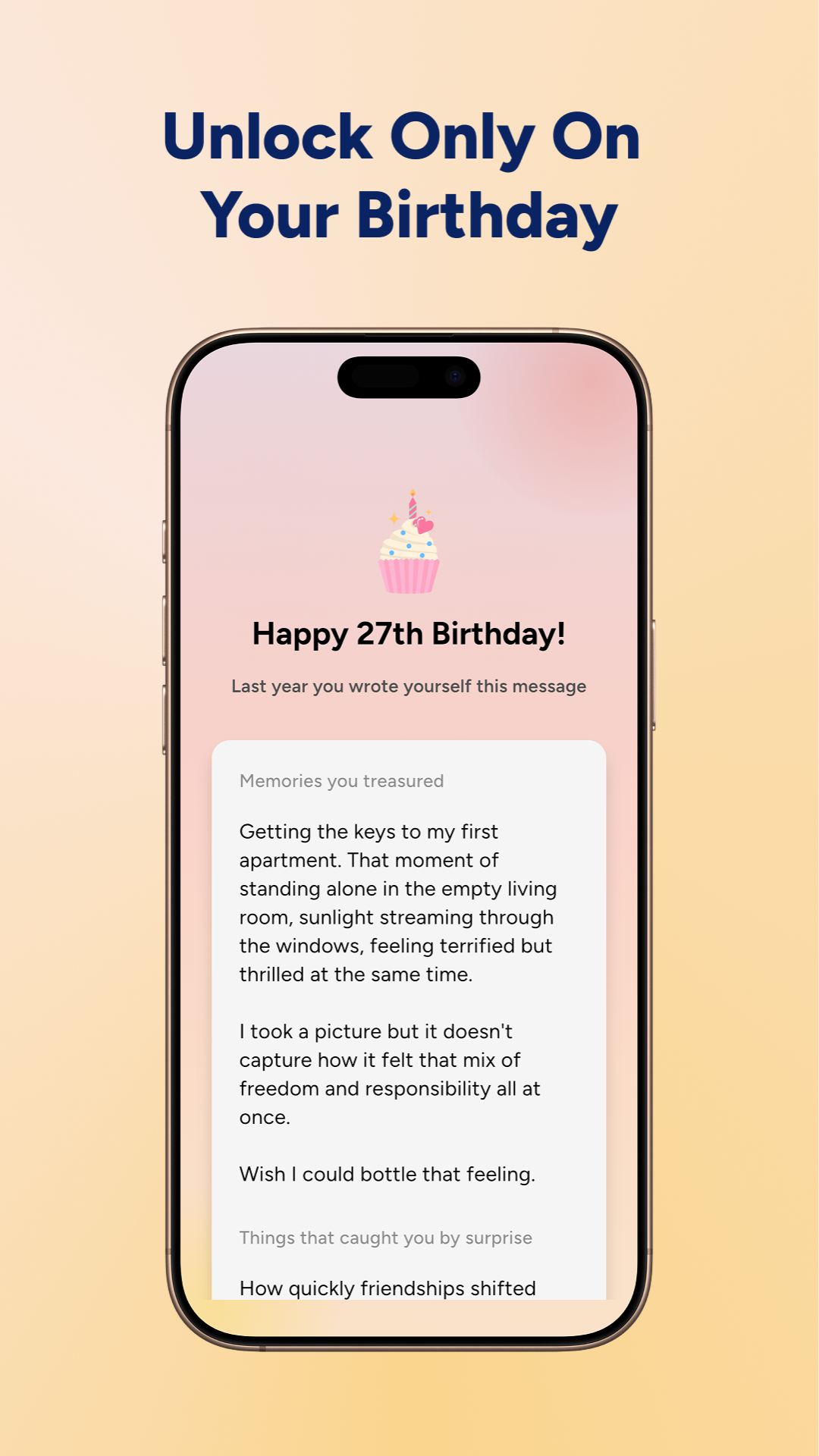 Create a personal time capsule that unlocks on your birthday connecting your past reflections with future aspirations in one magical message.