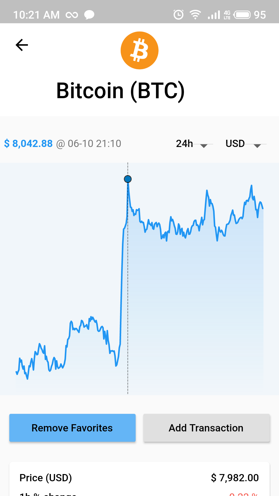 - Fiat & BTC charts for multiple durations. (24h, 7d, 30d, 1Y, ALL)