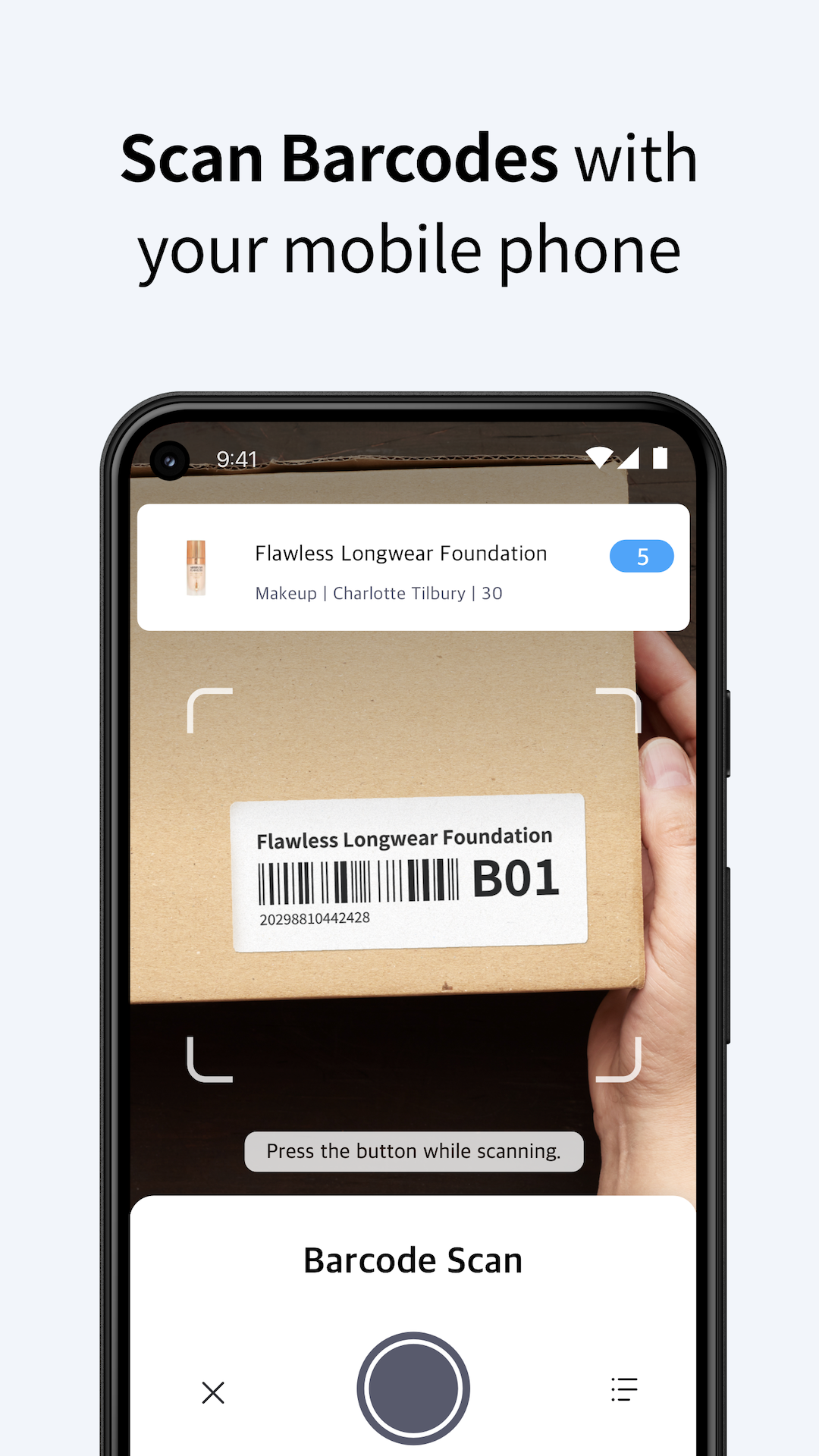 - Scan to stock in or stock out. Search for your product from the item list or start counting inventory in a single click.