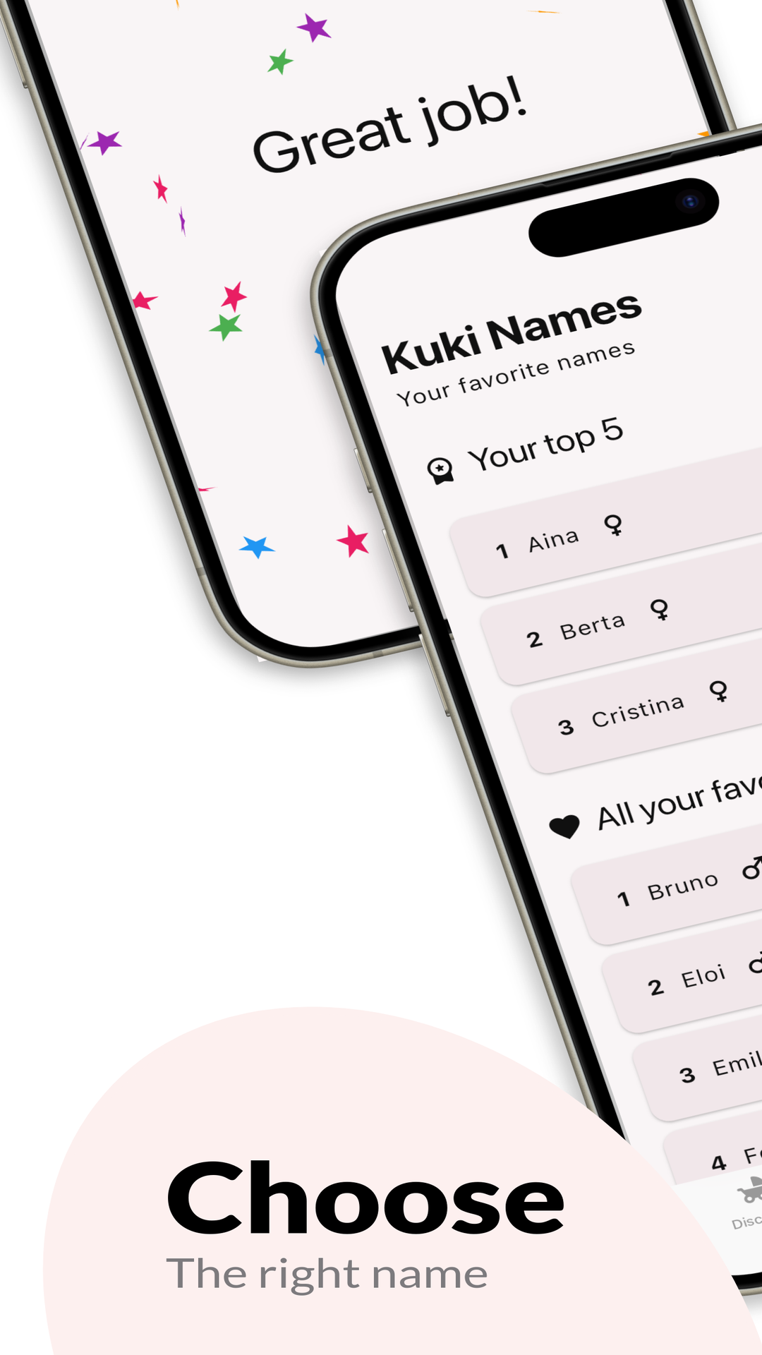 ✅ Save and select top names: Order your favorite names by priority, define your "Top 5" and view matched names with your partner.