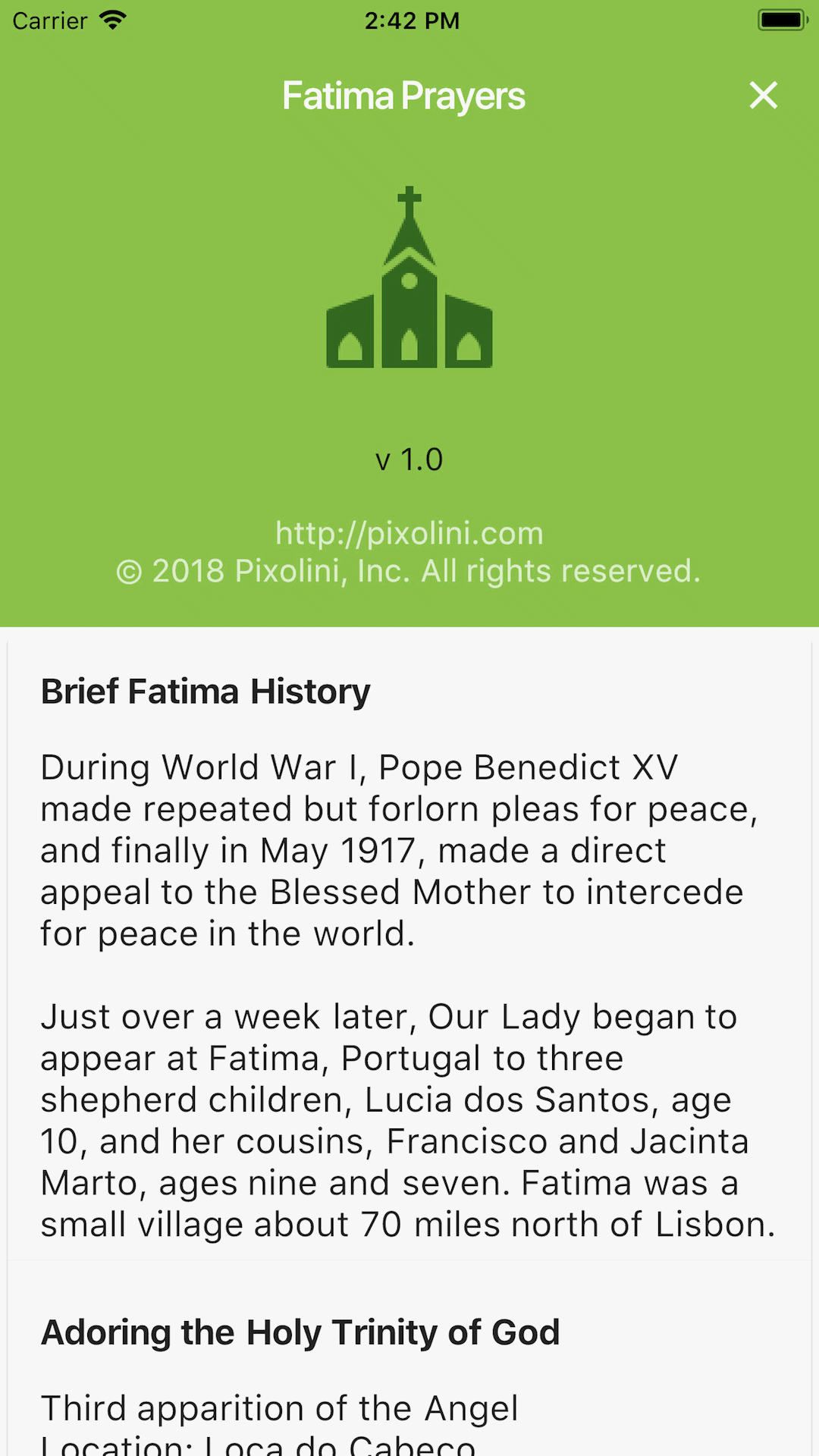 The Fatima Prayers app was inspired to spread devotion in adoring and making reparations to Jesus Christ present in all the tabernacles of the world.