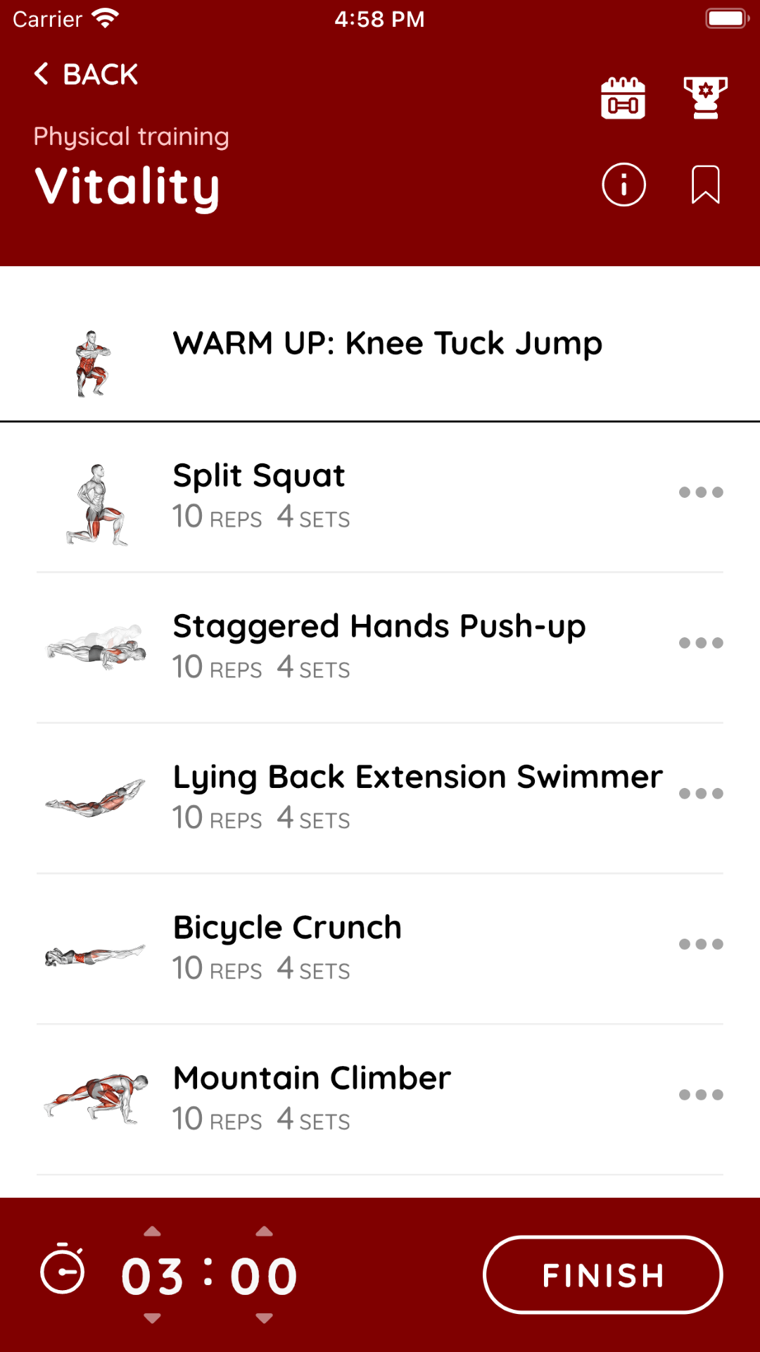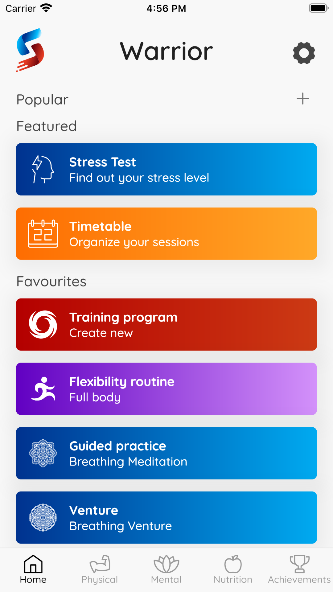 - Highly developed motivation system where you collect experience points (by completing physical workout, stretching training, meditation, breathing sessions,...), progress through stages, upgrade your avatar and unlock achievements.