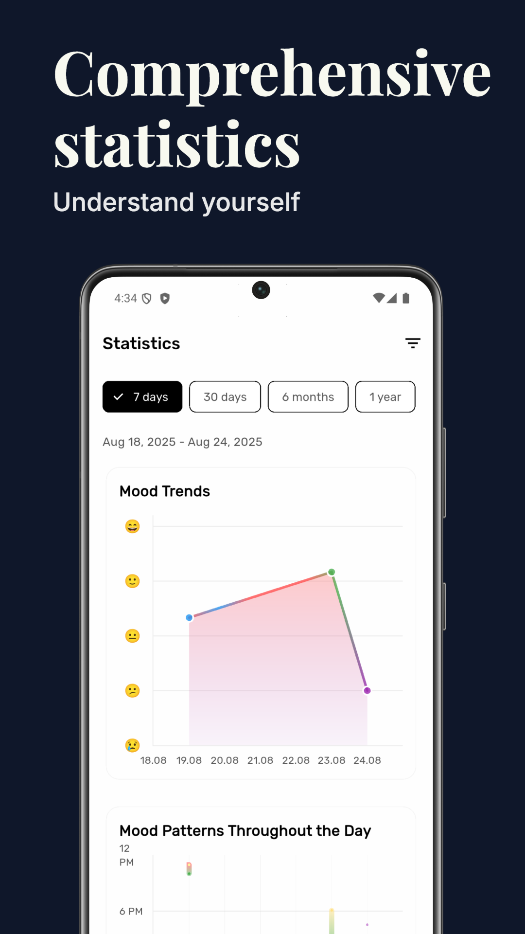 - Powerful Statistics. Clear charts and weekly insights that reveal patterns in your feelings.