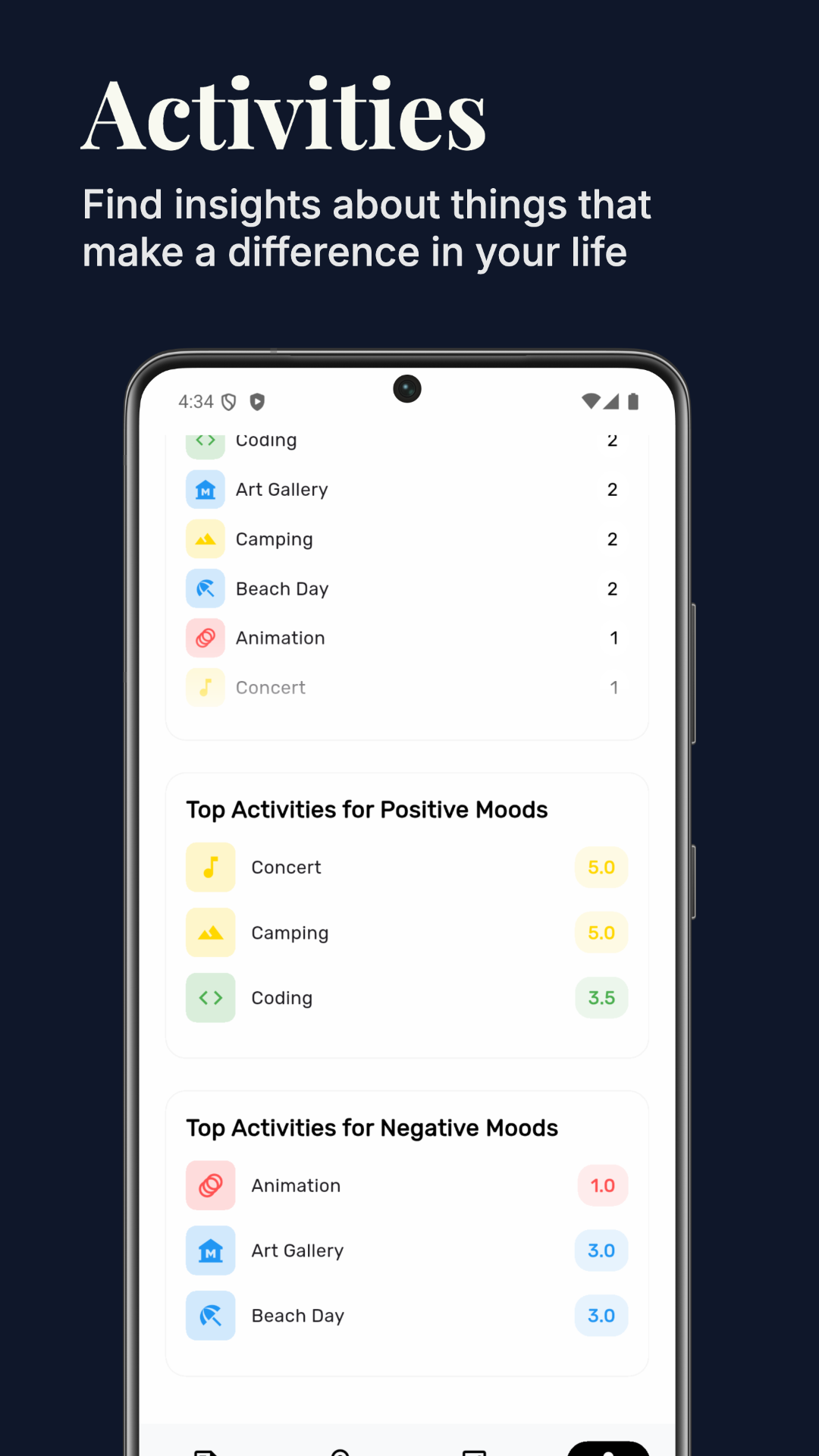- Activity Insights. Discover which activities lift you up, and which drag you down.