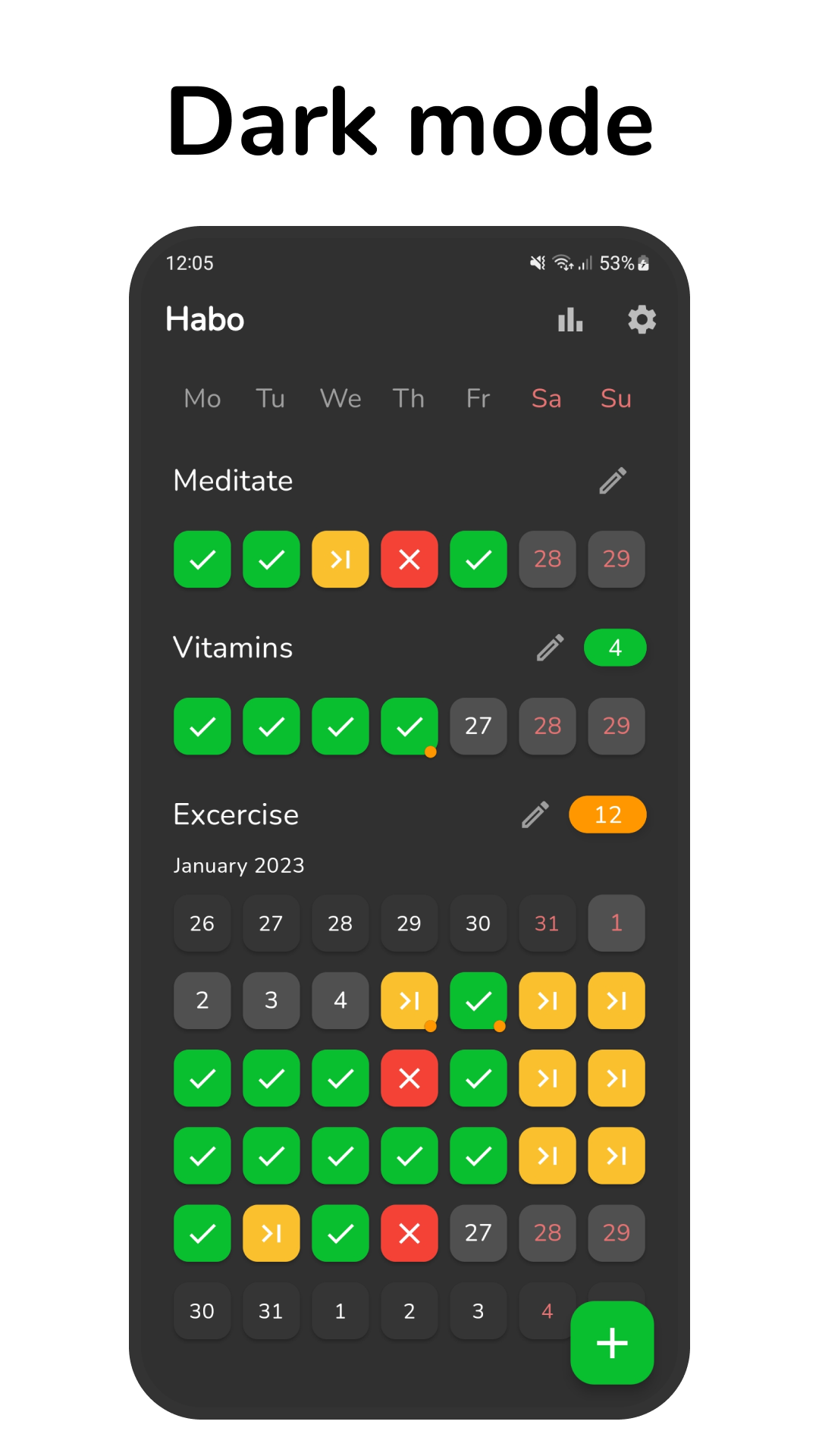 Introducing Habo, the open-source habit tracker app that helps you create and maintain healthy habits for a better life. With its user-friendly interface, Habo makes it easy to track your daily routines and monitor your progress.