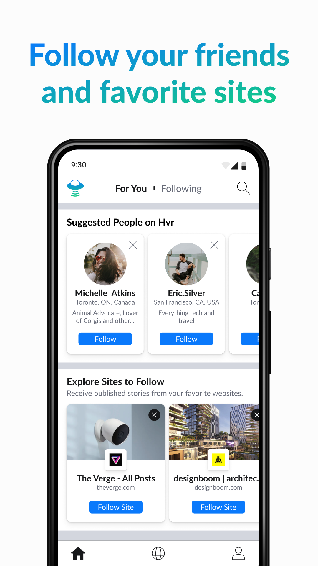 Hvr blends the freedom of surfing with the pulse of social to make the web more useful and fun. Discover, share, and discuss the web all in one place with Hvr, a new way of surfing that’s social.