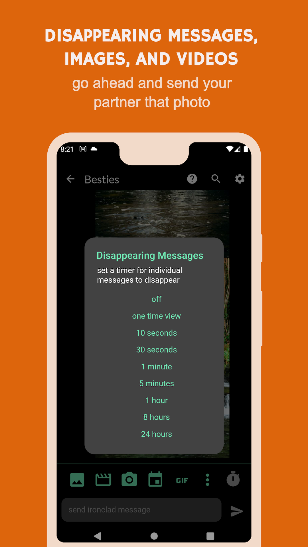 Privacy features include hidden chats, locked photo vaults, disappearing messages, one time view images/videos, and granular control over what can be shared.