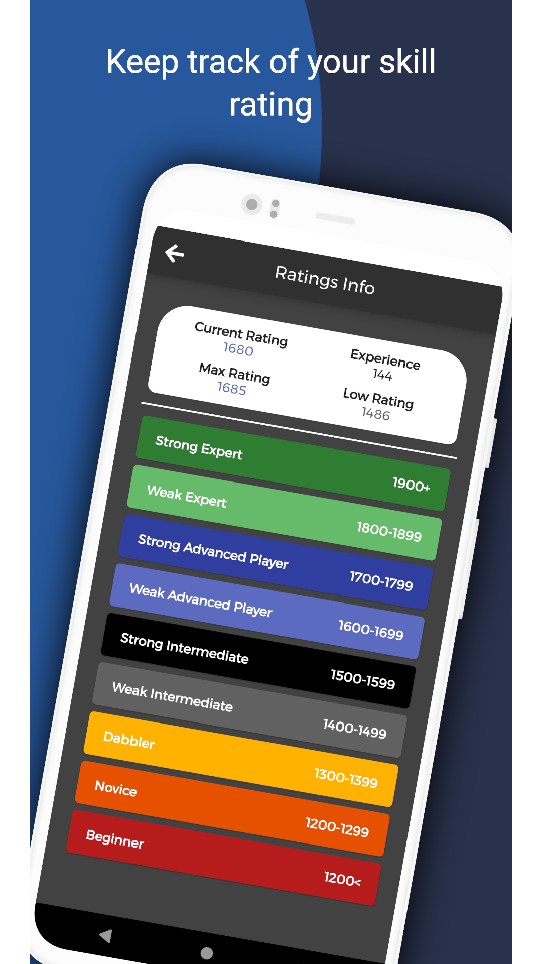 - Player rating(built in backgammon rating system that determines your skill level)