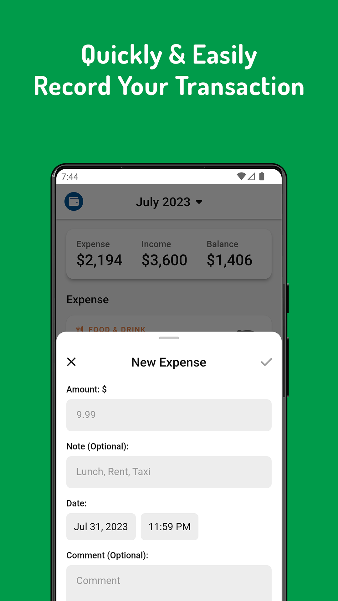 Easy to use expense tracking, income tracking, & budget planner in your pocket.