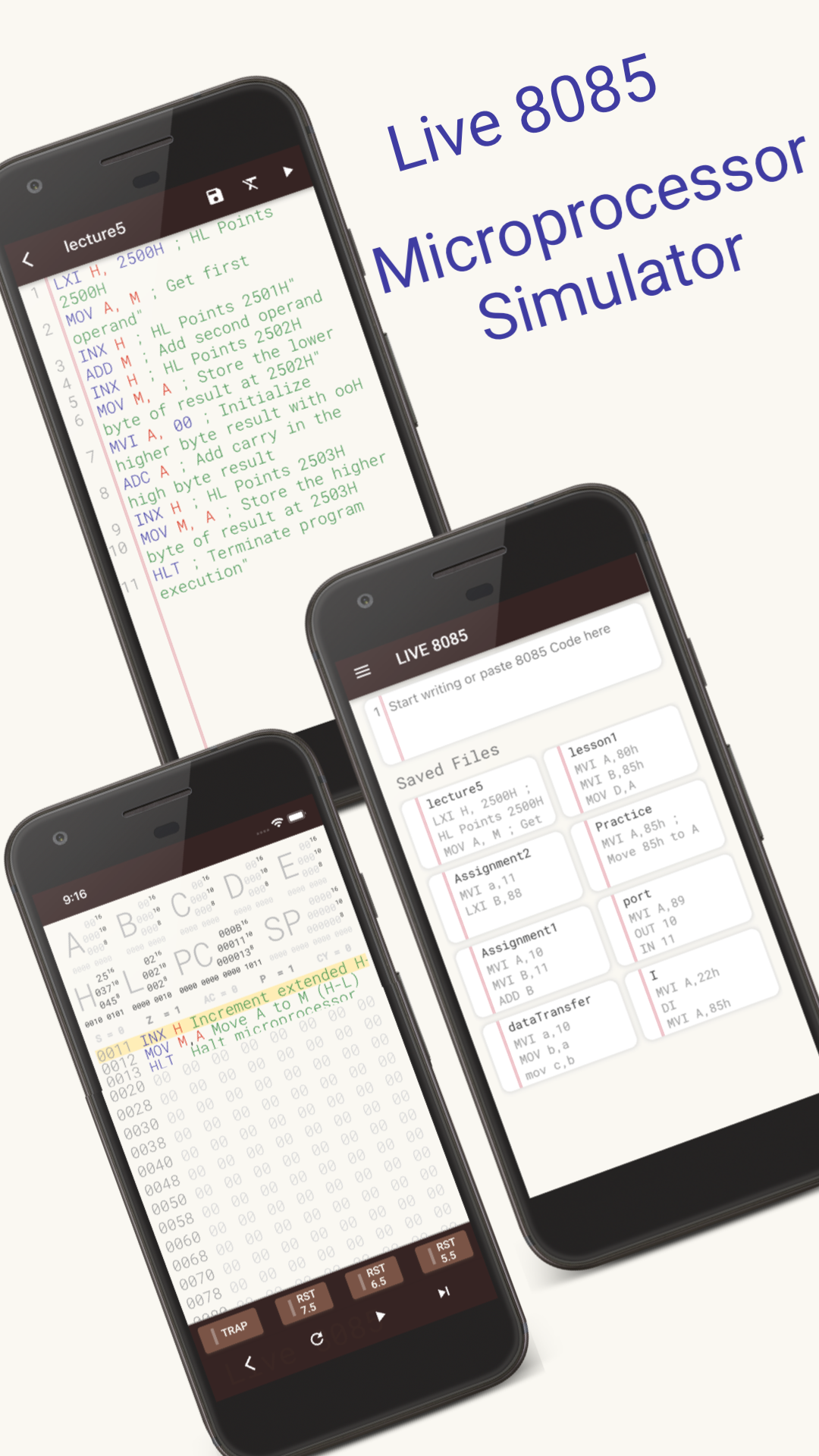 Live 8085 is an Intel 8085 Microprocessor simulator. This simulator lets you see live data of the 8085 Microprocessor.
