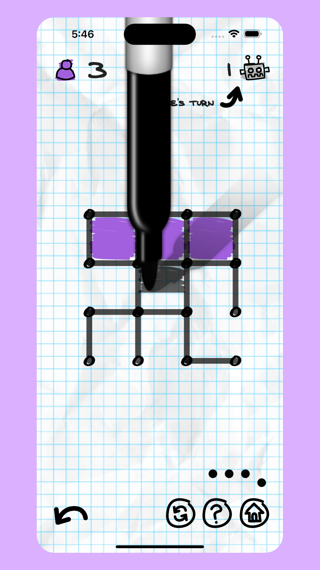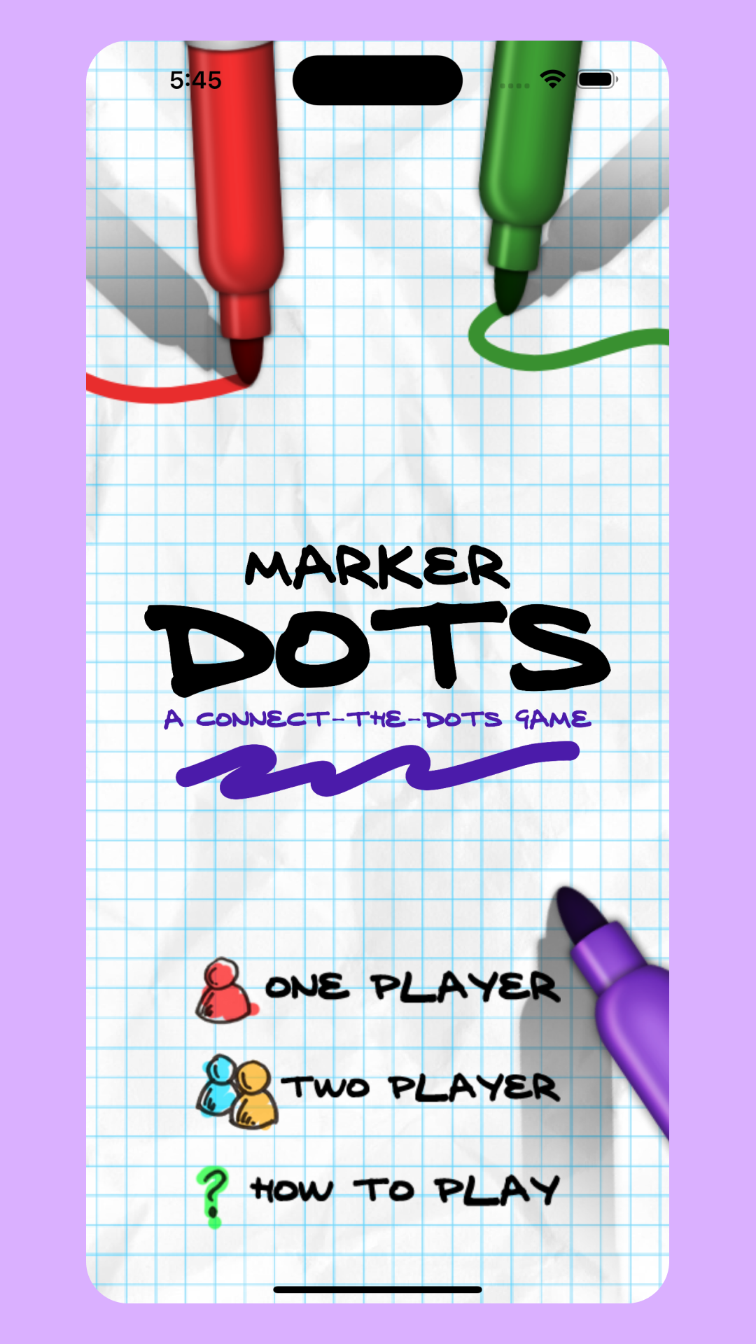 The point of the game is to connect adjacent dots to make lines, which allow you to make squares. Each player gets to pick a color to fill the board with squares. The player with the most squares in the board wins.