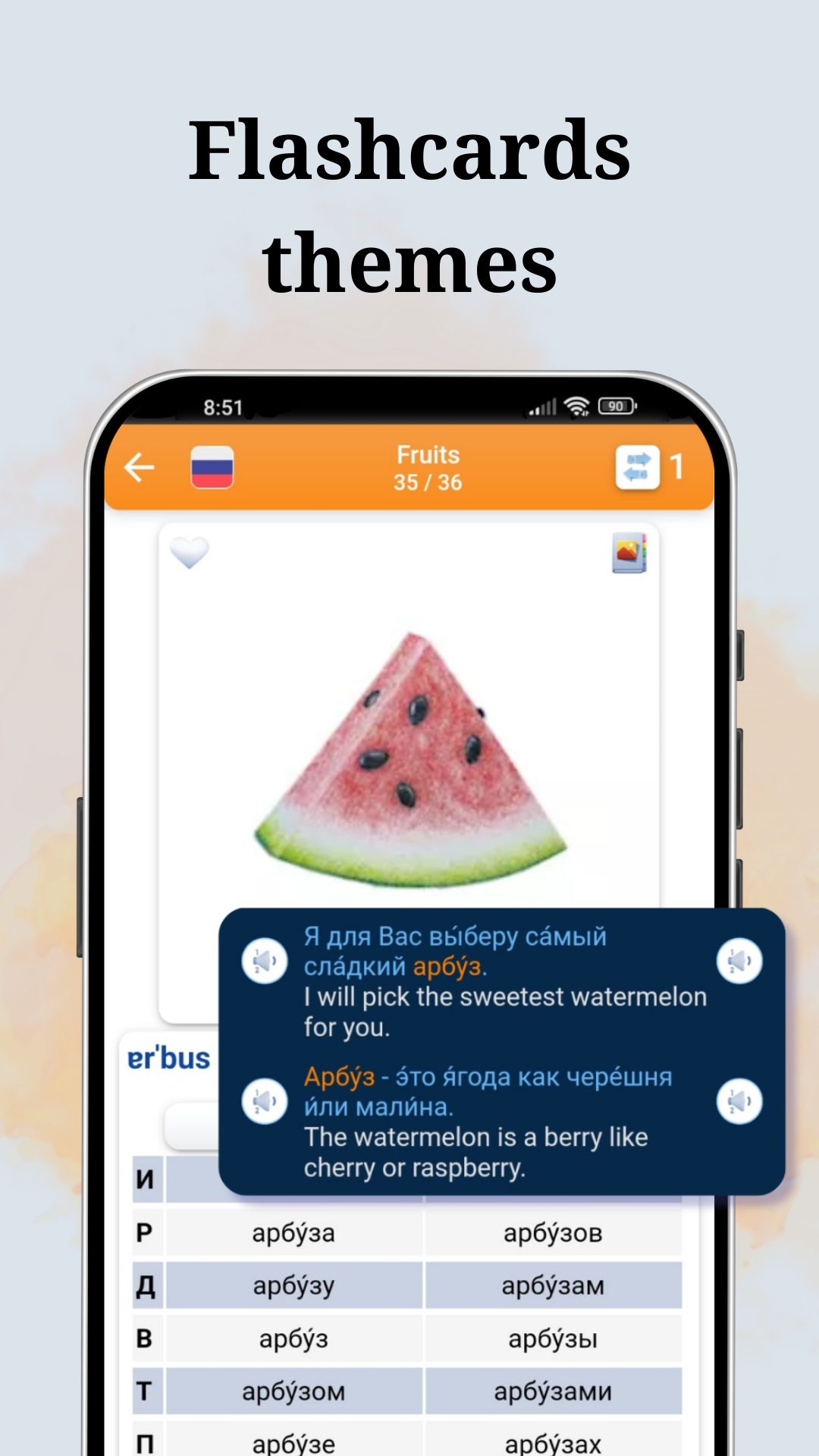 Nextlingua has a visual dictionary containing over 5,000 pictures, examples of each word’s usage, declensions (depending on the language), conjugations of all verbs, basic and advanced grammar, and much more information on each word or expression. In addition, there are review lessons and dialogues that will help you consolidate what you have learned. The lessons cover basic, intermediate and advanced levels.