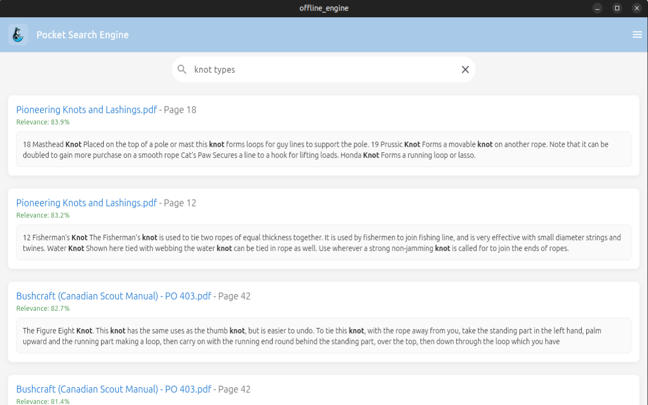 A "mini Google" that works without the Internet on your PDF and HTML files
