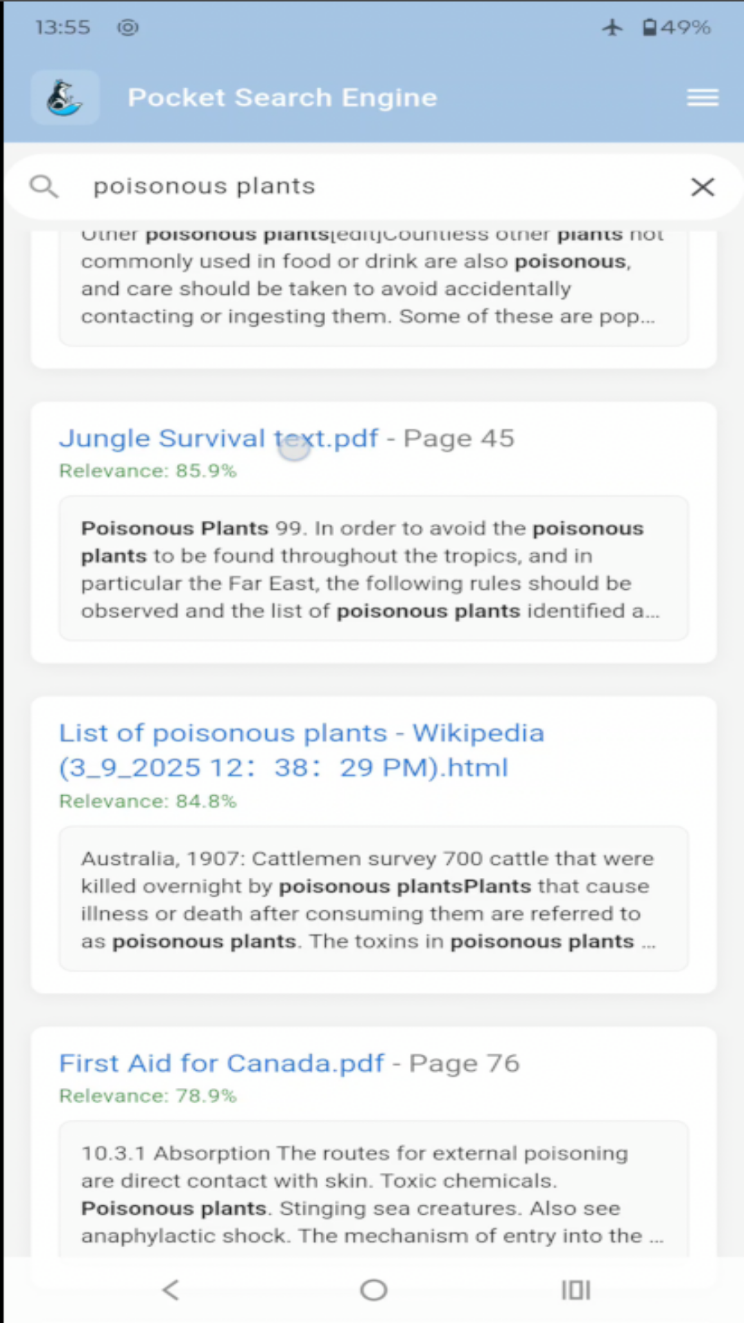 Offline Search Engine (formerly Pocket Search Engine) is an on-device search engine app, a "mini Google" that works without the Internet.
