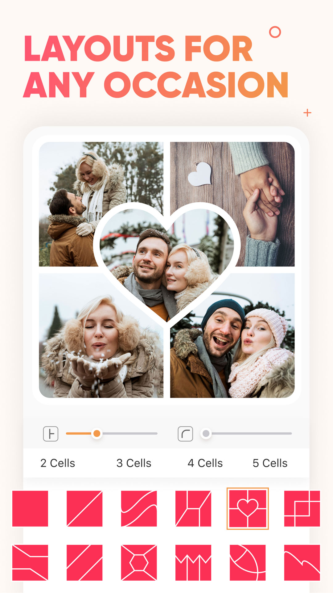 Whether you are looking for a square grid or a heart-shaped one, we have the perfect layout for you to create the best collage. Plus, you can customize each layout by changing padding, border, and background. Are you a free spirit wanting to unleash the designer within? Use our freestyle layout to create a design that is truly yours.