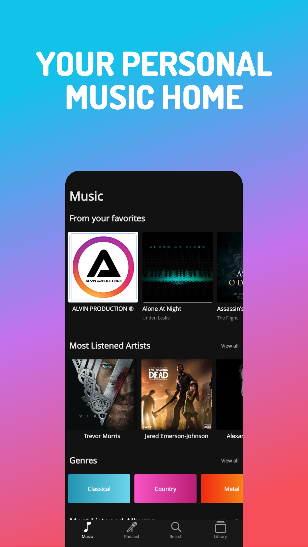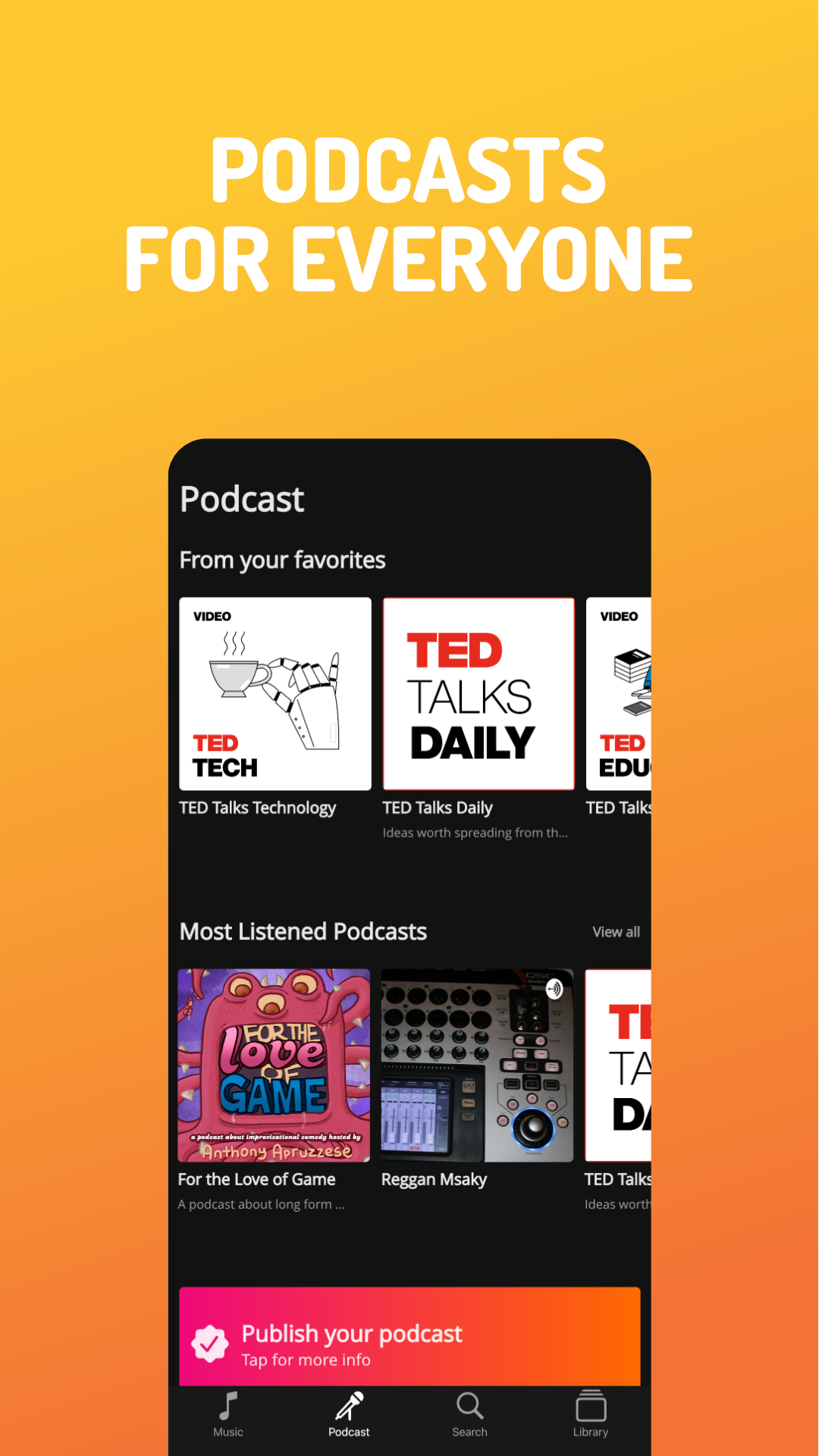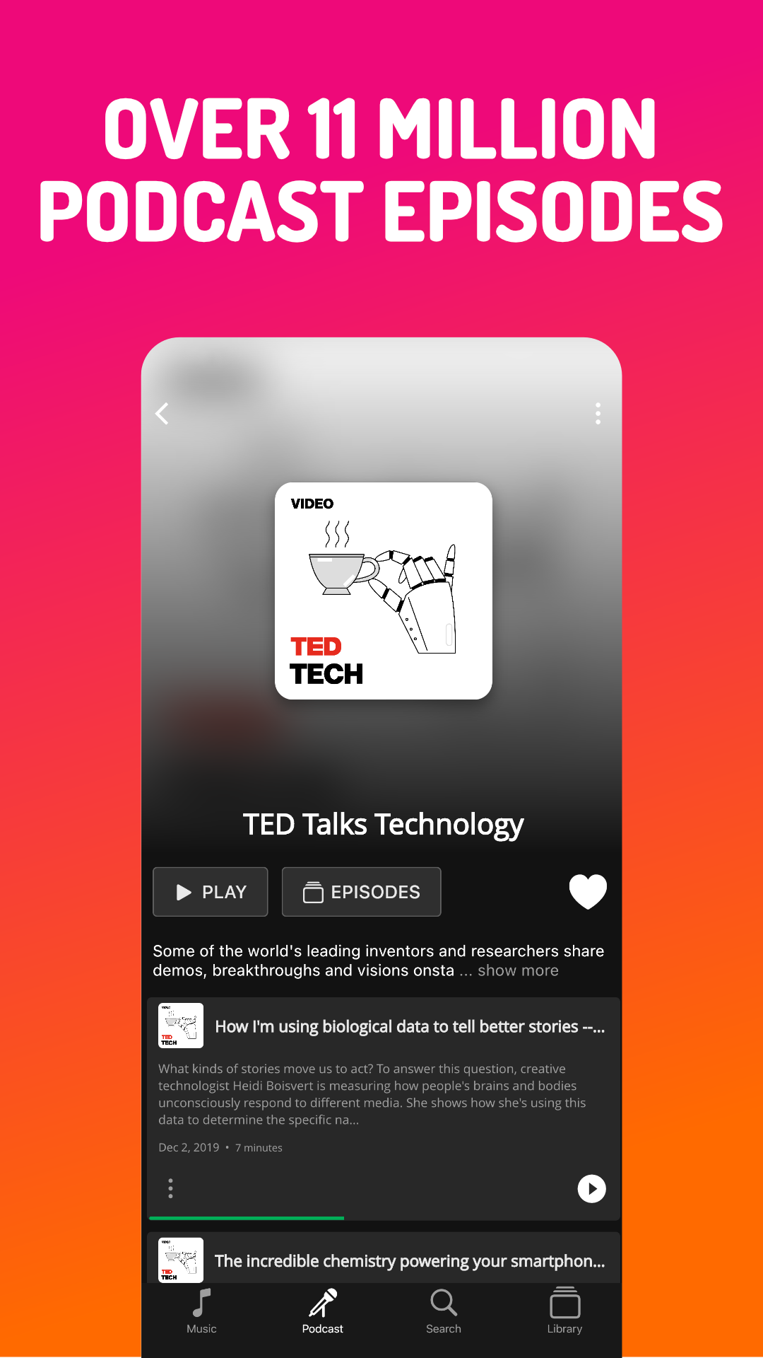 • Add songs, artists, albums, podcasts and podcast episodes to your Library