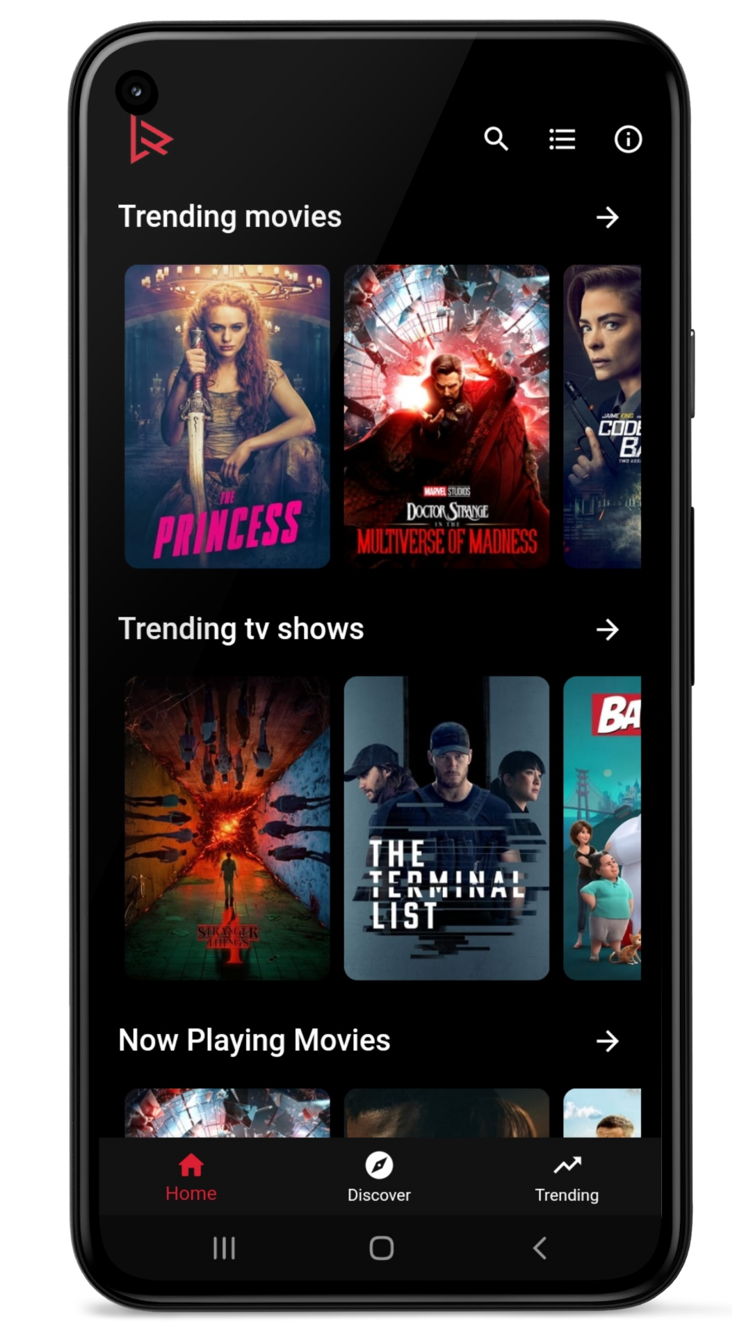 - View lists of popular, trending, top rated, airing today movies and tv shows.