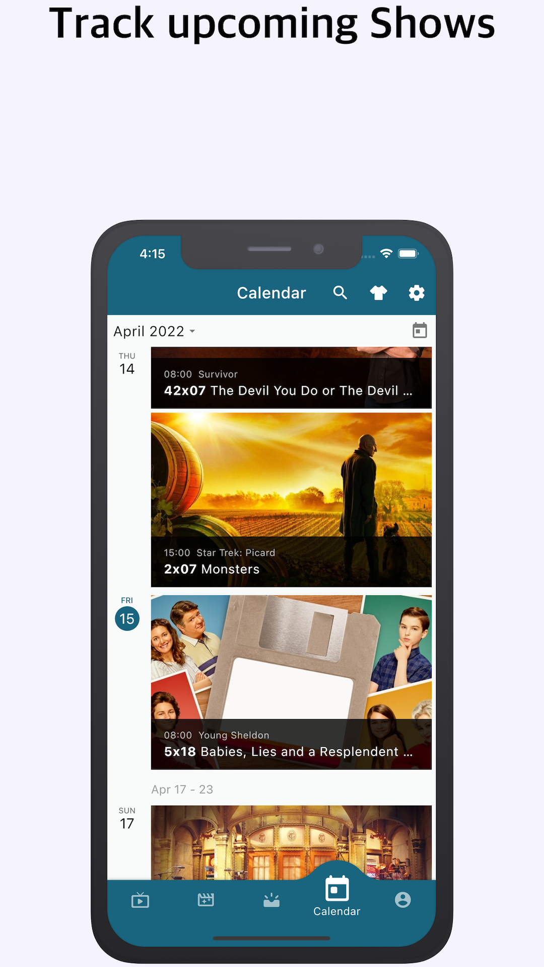 - Calendar of incoming movies or TV shows (by your locale timezone)