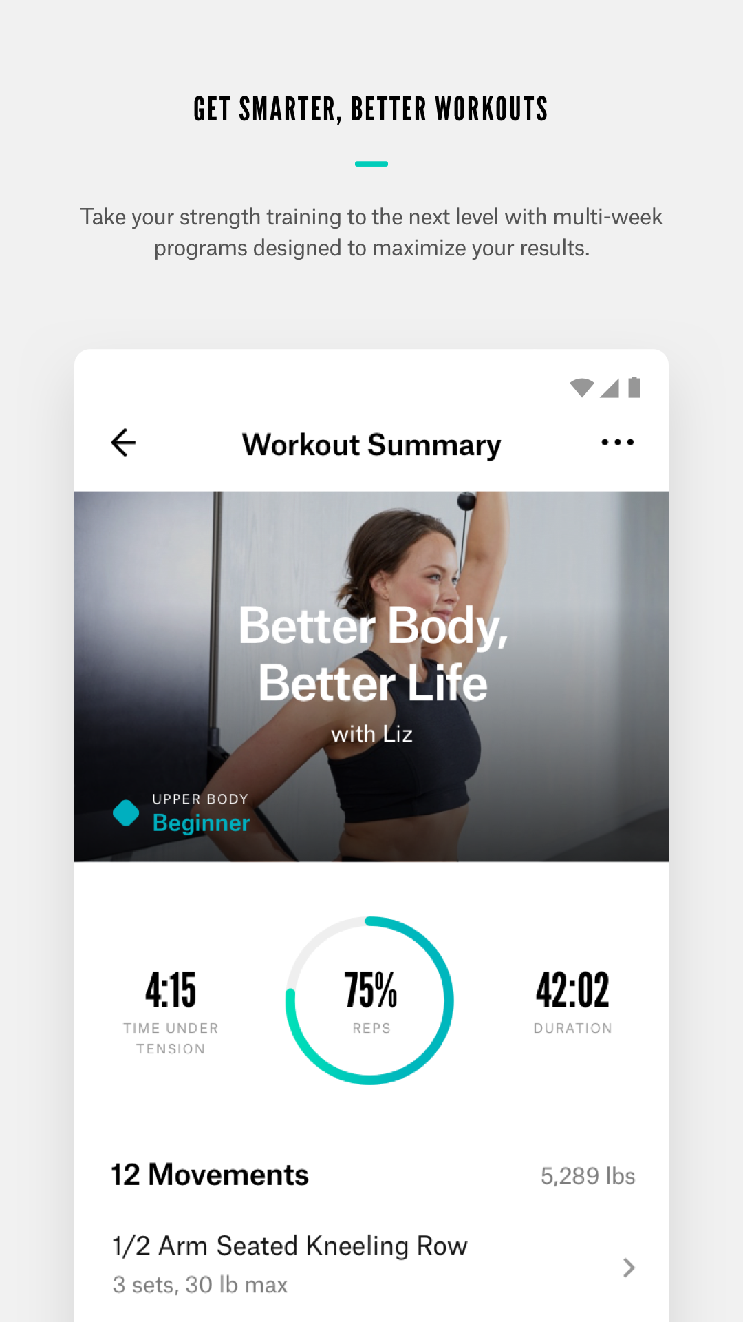 Whether you want to increase flexibility, build strength, or up your endurance, Tonal has a program perfectly suited to your goals. Multi-week programs are designed to maximize your results and take you to the next level, with new exercises each day.