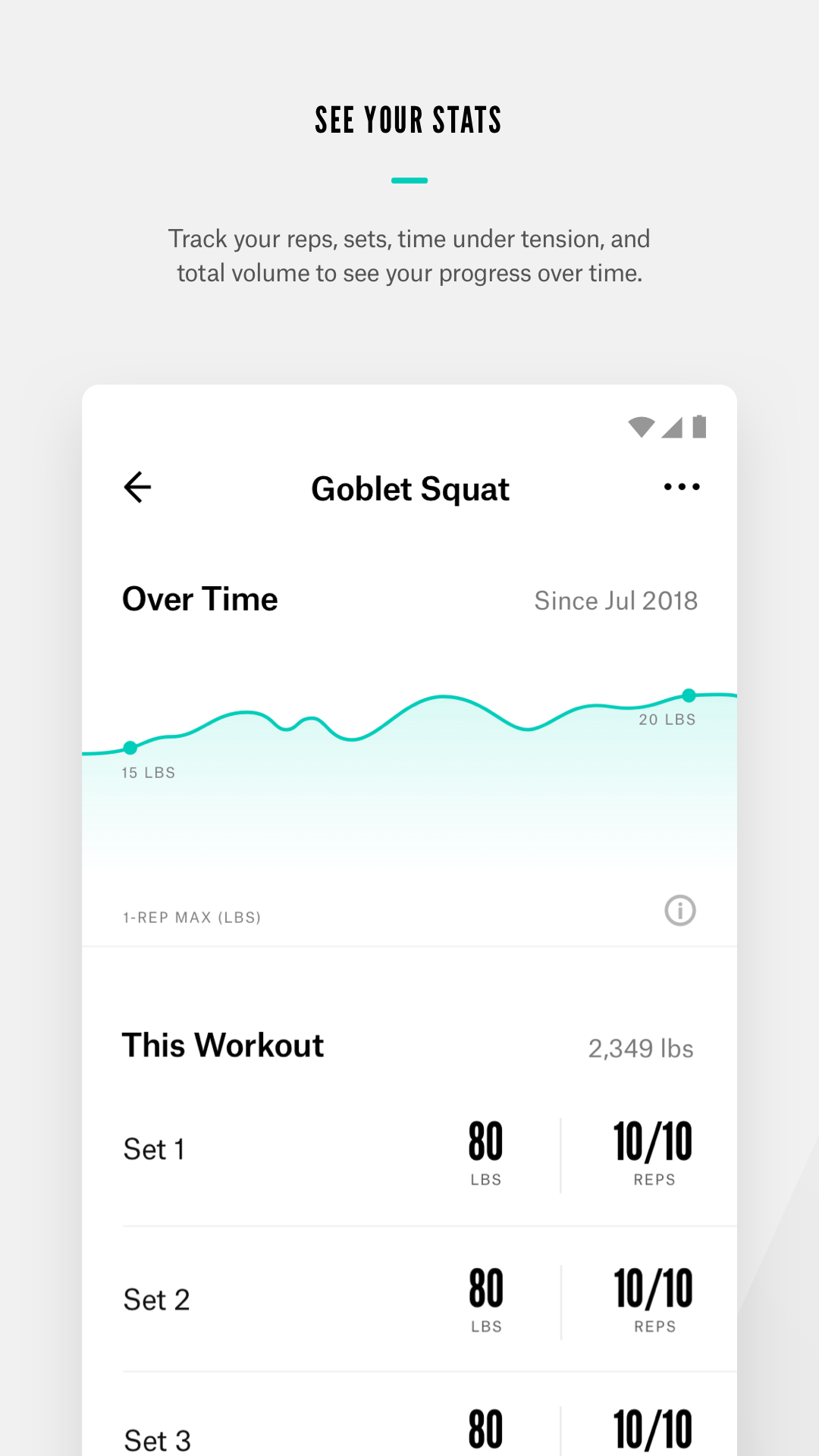 Tonal takes the guesswork out of strength training by systematically tracking your weights, reps, and volume. You can easily see your progress and benchmark your success as you go.