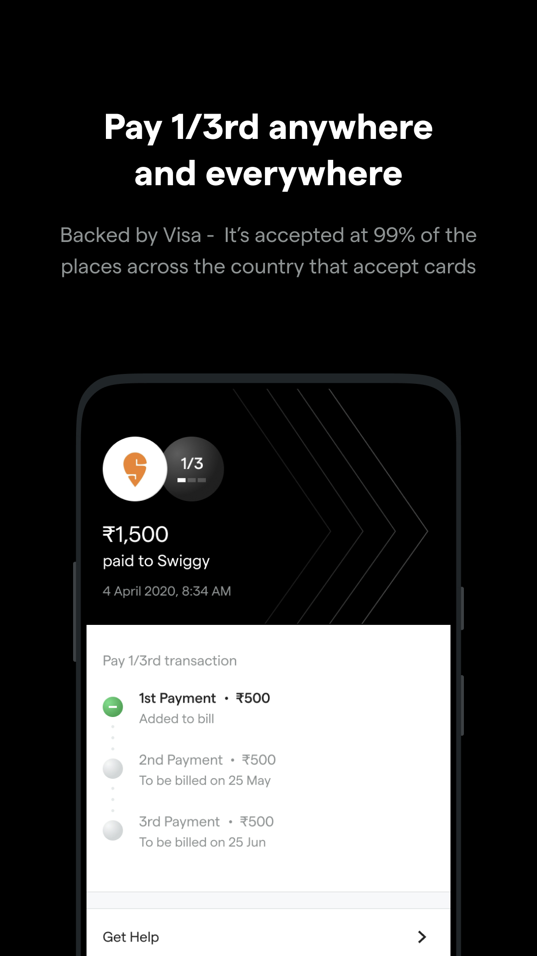 The Pay 1/3rd revolution is here. Uni Pay 1/3rd Card is exclusively made to help you pay in 3 parts for no extra charges. Backed by Visa, Uni Pay 1/3rd Card is accepted at 99% of the places across the country that accept credit/debit cards. Yes, that’s true now spend anywhere and everywhere with your Uni Card and just Pay 1/3rd.