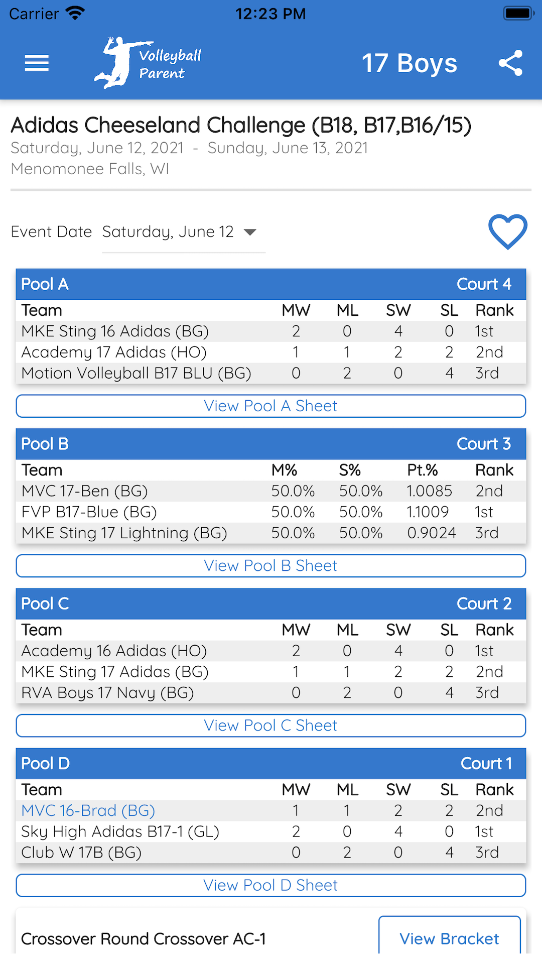 If you spend your weekends in the gym watching club volleyball tournaments this application is for you. Find your tournament, find your team(s). Favorite teams and tournaments for easy access. Find your play schedule and results with just a couple taps.