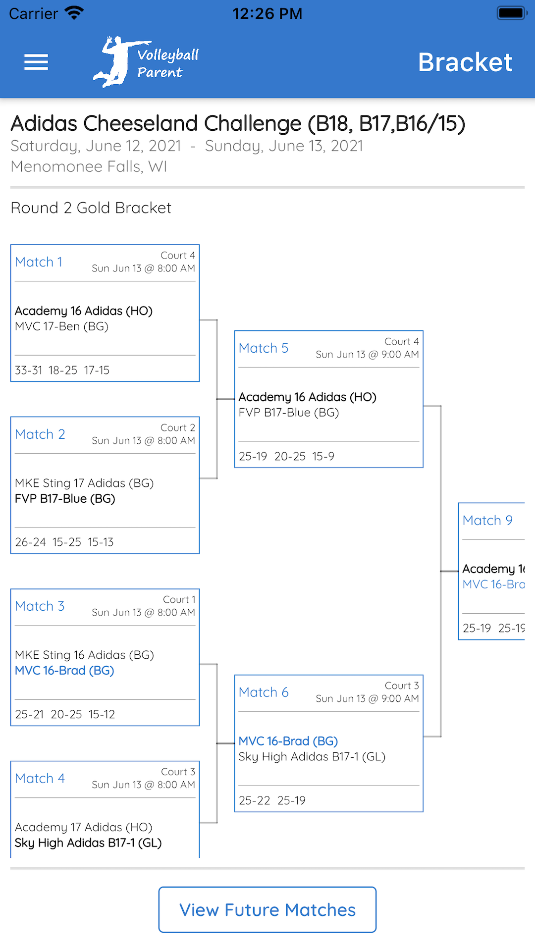Follow all your USA Club volleyball teams with this great alternative to the AES application/Website.