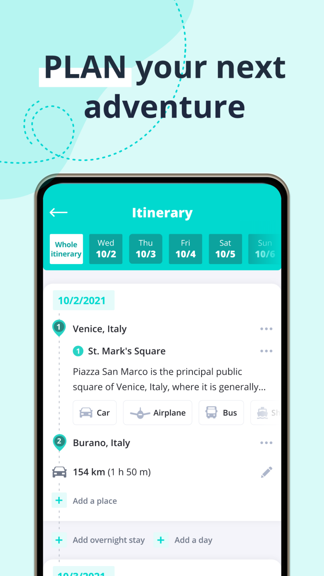 - Add places you want to visit into your ITINERARY