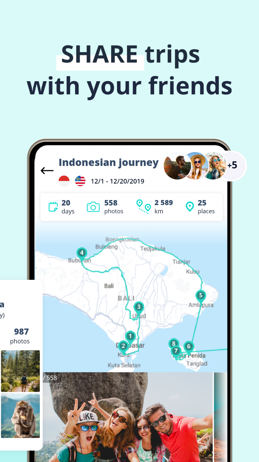 - Easily SHARE YOUR TRIPS in a stunning visual format